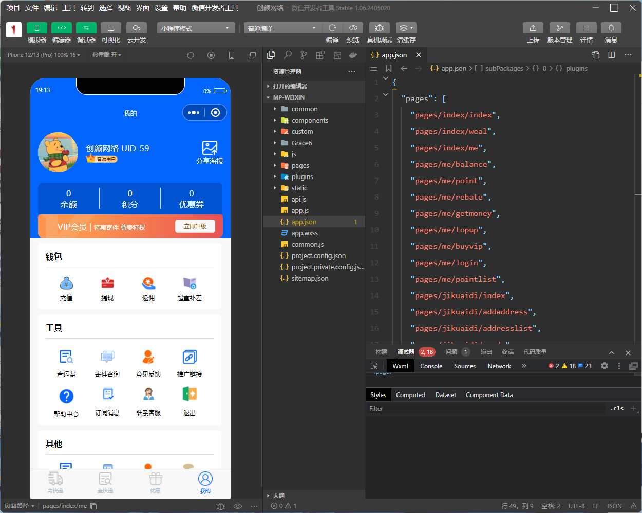 需要正式微信小程序账号,在微信公众平台小程序后台中添加对应的插件(物流服务查询组件);否则进不去前台!